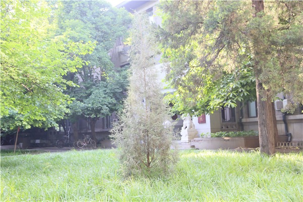 位于生物楼前东南角的草坪上,种植了两棵不寻常的柏树,它们来自于西藏农牧学院(前身为西藏大学农牧学院)。