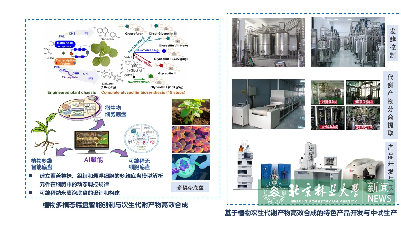 植物次生代谢产物高效合成北京市重点实验室紧扣国家生物经济战略与北京打造全球合成生物创新高地的定位,以构建植物合成生物学核心技术体系及产业转化能力为导向,围绕“植物次生代谢调控网络解析与合成元件高效挖掘”“植物多模态底盘细胞智能设计与创制”“天然产物高效合成技术体系集成与创新”和“特色产品开发与中试生产”四大研究方向,打造国际领先的植物天然产物智能合成生态系统。