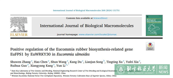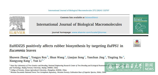 近日,我校生物科学与技术学院杜仲育种团队在International Journal of Biological Macromolecules(一区,TOP期刊,IF=8.2)杂志分别发表了题为"EuHDZ25 positively affects rubber biosesynthesis by targeting EuFPS1 in Eucommia leaves"和"Positive regulation of the Eucommia rubber biosesynthesis-related gene EuFPS1 by EuWRKY30 in Eucommia ulmoides"的研究论文,揭示了转录因子EuHDZ25、EuWRKY30调控杜仲胶合成的分子机制,及其在三倍体杜仲叶片胶含量升高中的作用。